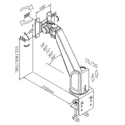 - Може да се ползва за монтиране на монитора на стена или на бюро (с C-clamp монтажна скоба)